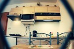 Kuhyňka je samozřejmě vybavená, dále je zde mikrovlná trouba, lednička, vařič a rychlovarná konvice.